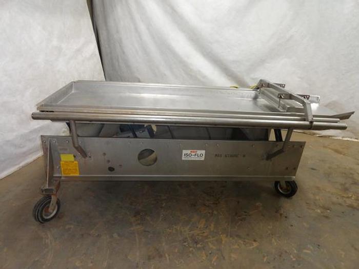 Ribbon blender for uniform mixing of dry powders and granules.